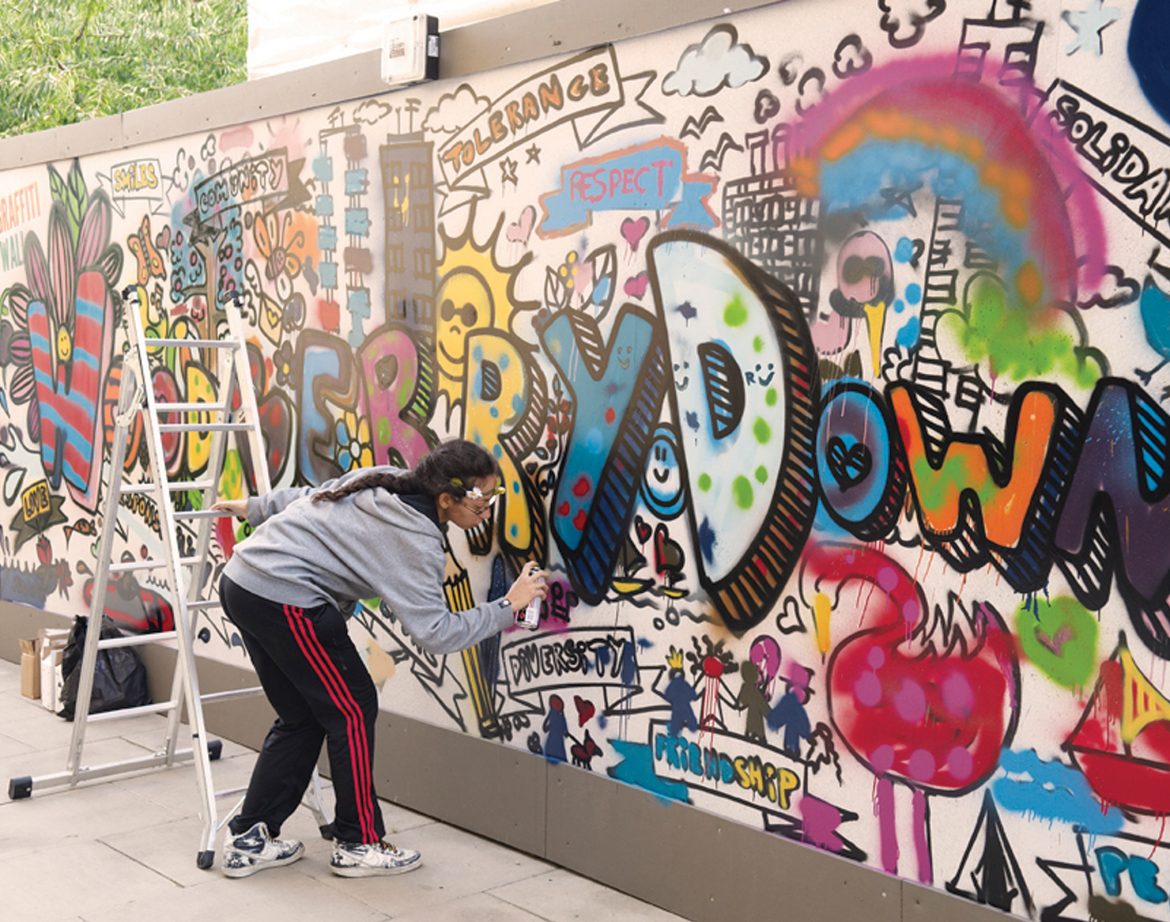 也有适合孩子们释放能力的攀岩墙和创意十足的涂鸦区。