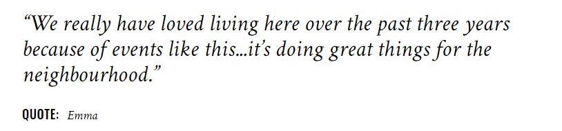 “过去三年里,像这样的活动让我们非常喜欢住在这儿…这真的为我们的社区做出了了不起的事情。”