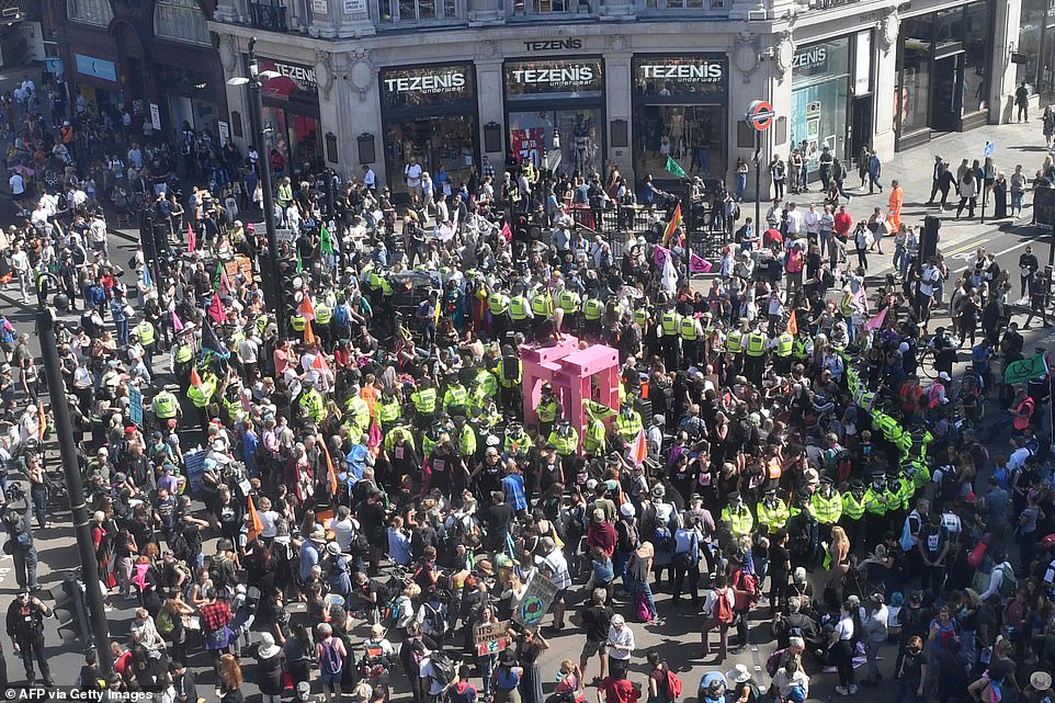 - 近日,气候变化抗议者封锁了牛津广场(Oxford Circus)附近的道路,在伦敦举办大型游行集会活动。一些激进人士还进了特拉法加广场附近的巴西大使馆,造成混乱。4天之内共200名极端抗议者被逮捕。