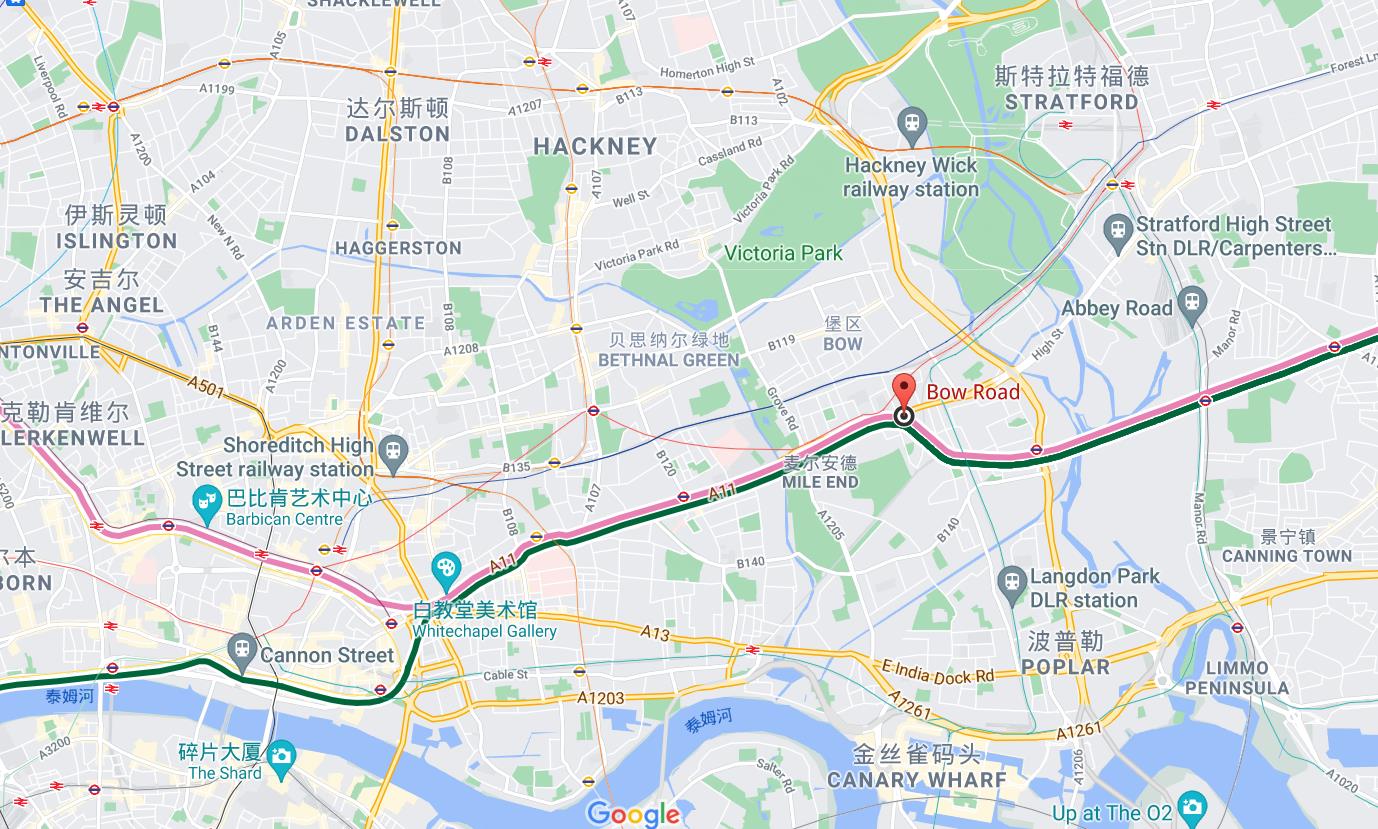 Bow Road位于东伦敦,其北部是奥运会举办场地之一Stratford,南部是新兴金融中心金丝雀码头,西边则是大名鼎鼎的老金融中心金融城,而Bow Road 刚好处于这个“金三角”的中心。