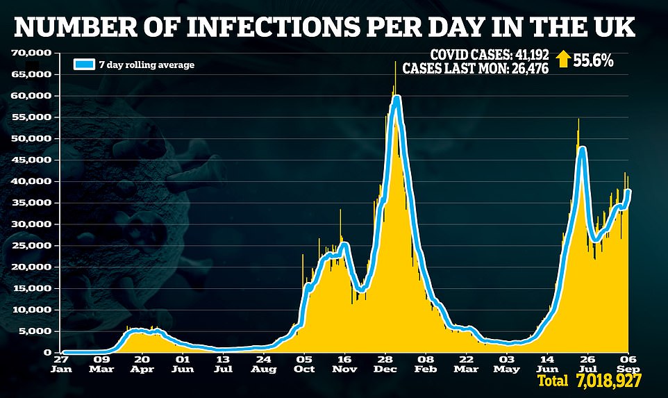 - 昨天,英国新增确诊41,192人,较上周同一时间上涨55.6%。但这一上升是由于上周一Bank Holiday检测人数下降导致的。英国将在本周对12至15岁的青少年是否大规模、定期接种疫苗做出决定。