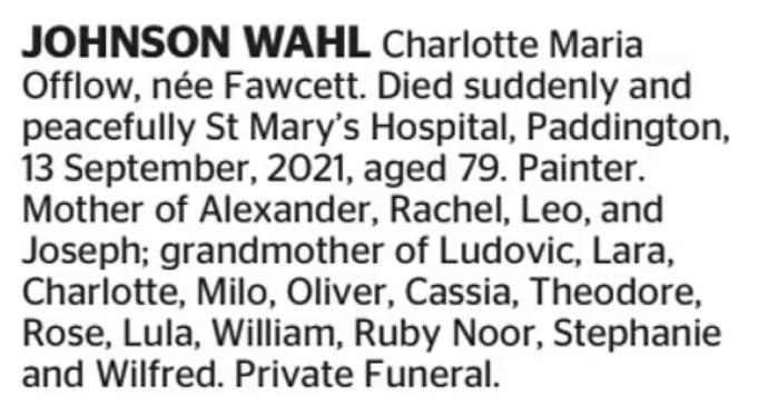 当地时间9月13日晚,英国首相鲍里斯的母亲夏洛特·约翰逊·沃尔(Charlotte Johnson Wahl)突然去世,享年79岁。