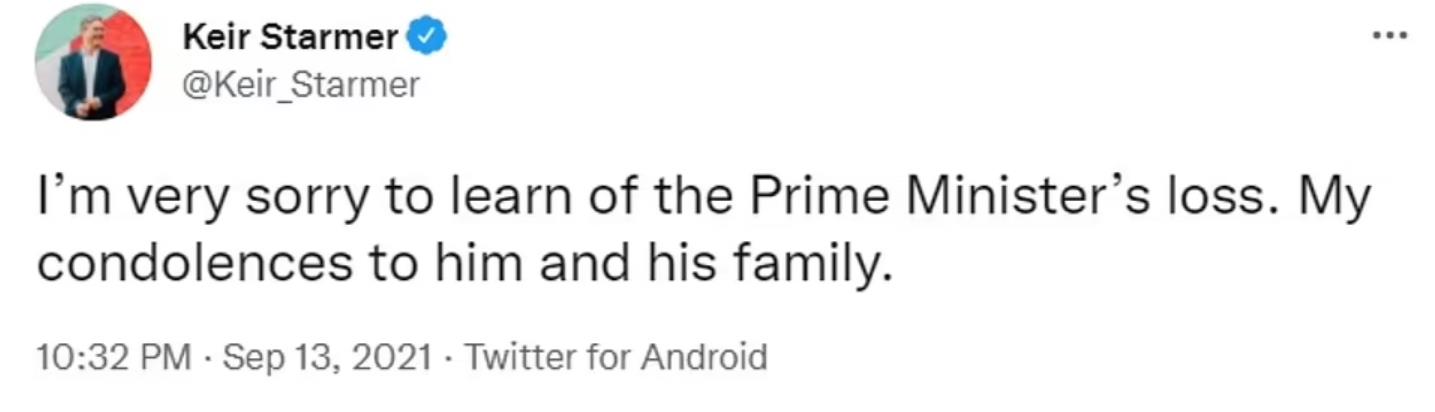 随后,包括工党领袖基尔·斯塔默爵士在内的多个政治领域的高级人物都向鲍里斯表示了哀悼。