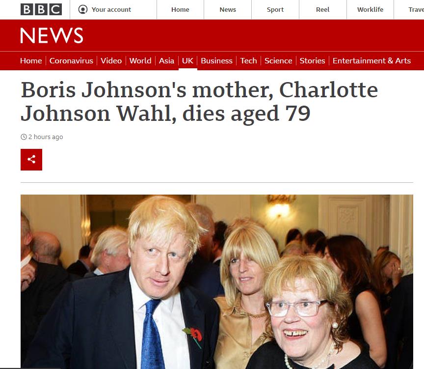 首相鲍里斯的母亲夏洛特·约翰逊·沃尔突然去世,享年79岁,曾自曝一生从未给保守党投过票…