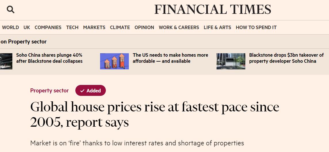 全球房价增速达16年以来新高,55个国家的平均房价年涨幅升至9.2%,主要受低利率、住房短缺和家庭储蓄充裕推动…