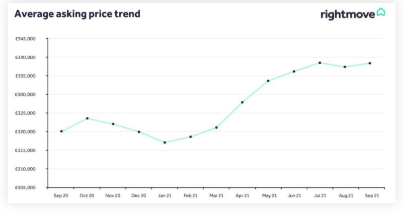 Rightmove发布的最新数据显示,8月份全国新上市房产的平均要价上涨了1,091英镑,环比上涨0.3%,同比上涨5.8%,达到338,462英镑的历史新高。