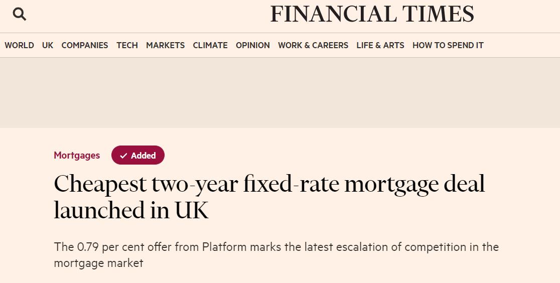 近日,英国Co-operative银行推出了最新的两年期固定利率抵押贷款,该产品利率为0.79%,创下最新记录,这也使得英国抵押贷款市场的竞争进一步加剧。