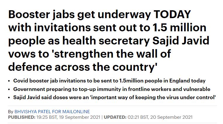 对此,卫生部长Sajid Javid表示,第三剂有助于“加强全国的新冠防御墙”,也是冬季来临之前“控制病毒的最重要方式”之一。
