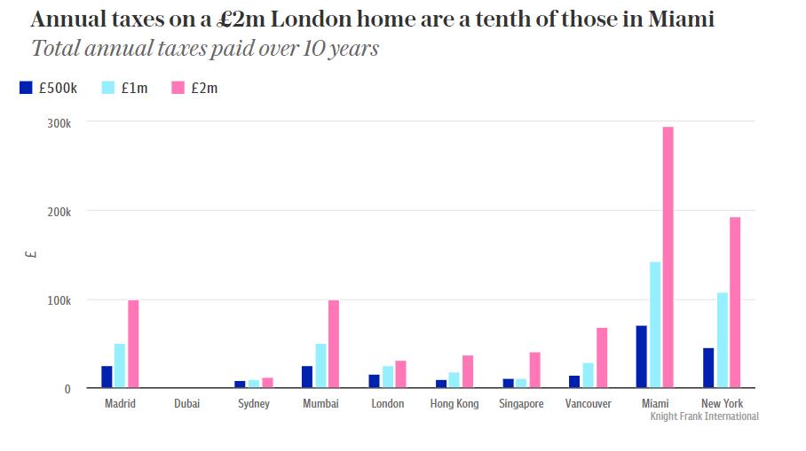 而从超级富豪们关心的税收来看,伦敦房产在持有期间的税收成本相对也非常低。