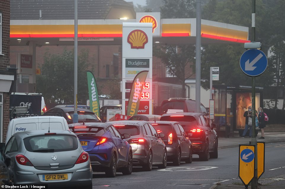 今天早上,在肯特郡的一个加油站,人们看到排着长队的汽车等待加油。就在一天前,加油站老板警告称,可能要实行汽油和柴油定量配给,并关闭加油站。