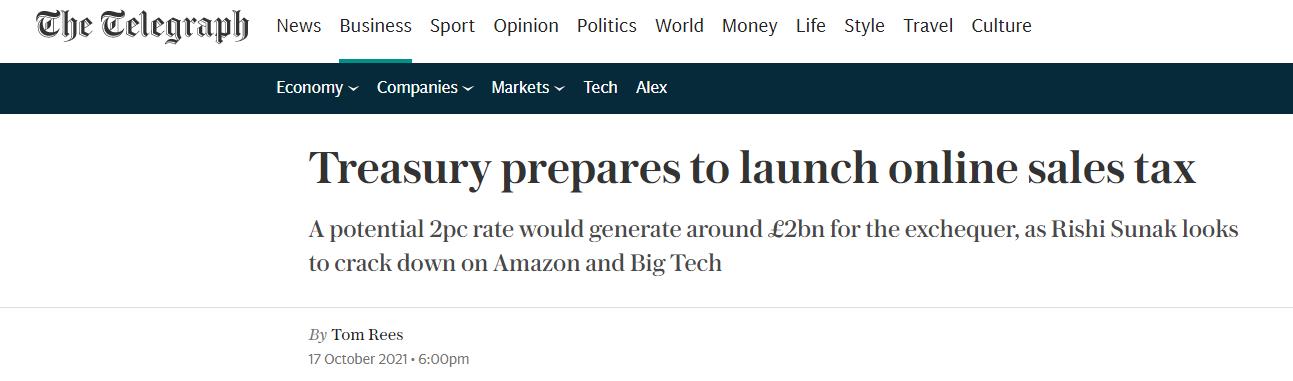 有政府内部人士也表示,财相正在考虑在更大范围内征收所谓的“亚马逊税”,尽管这些计划还处于非常初级的阶段,但显然已经确定了前进的方向。