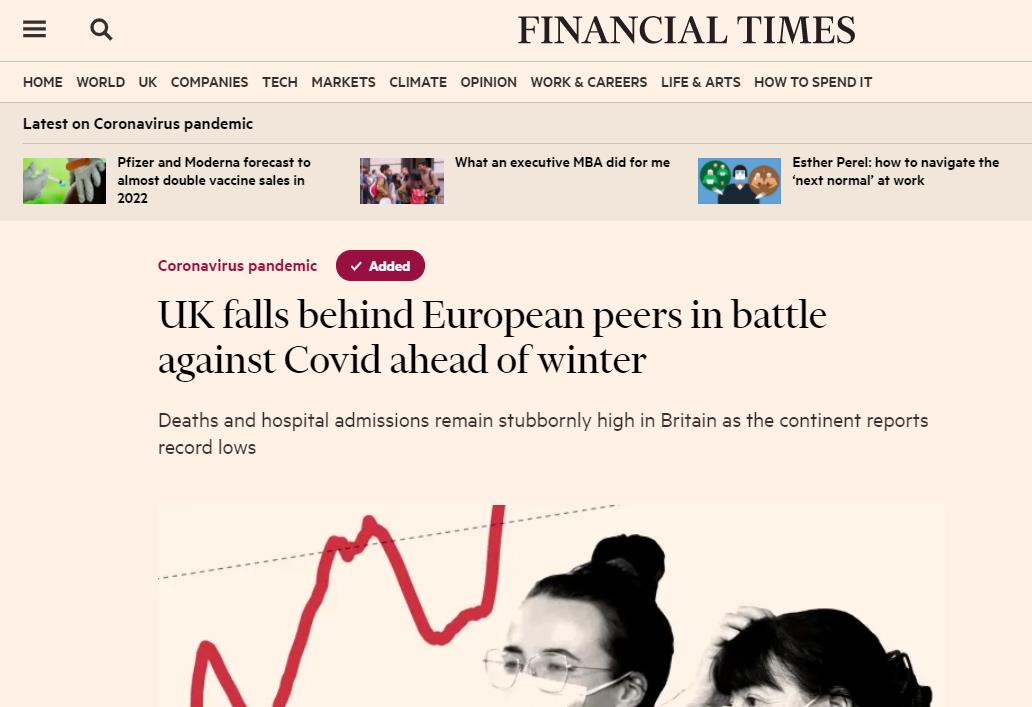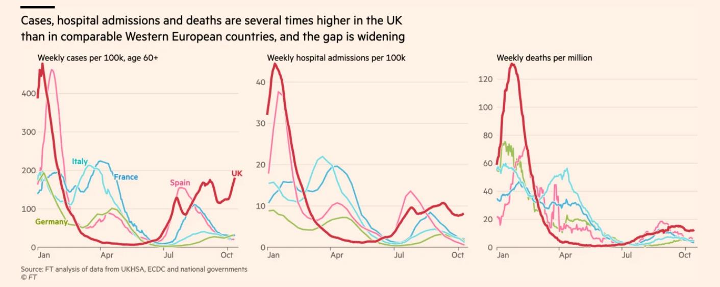 英国新冠住院率和死亡率已经超过了西欧其他国家,科学家敦促英国政府在冬季再次实施新冠限制措施…
