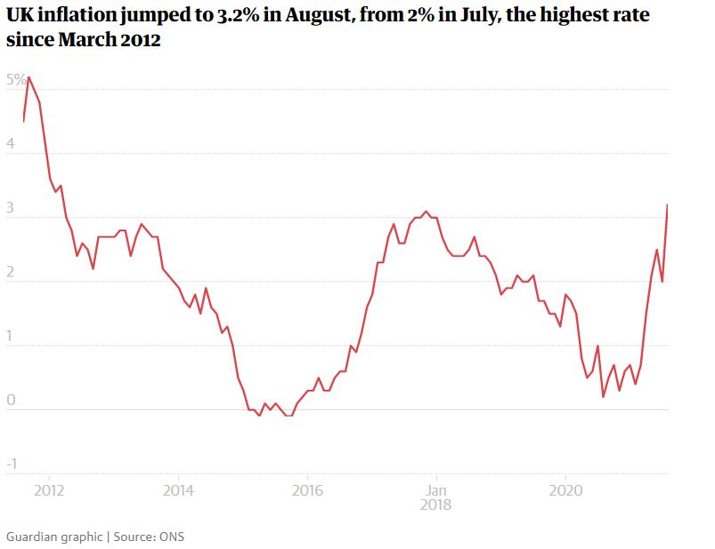 数据显示,今年8月份,英国的通胀率已经跃升至3.2%。经济学家预计,9月份通胀率将保持在3.2%的水平,年底将大幅升至4%以上。