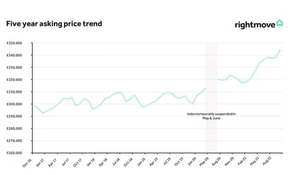 Rightmove的最新数据显示,今年10月份,英国房屋要价再次打破记录,全国平均房价上涨了近6,000英镑。