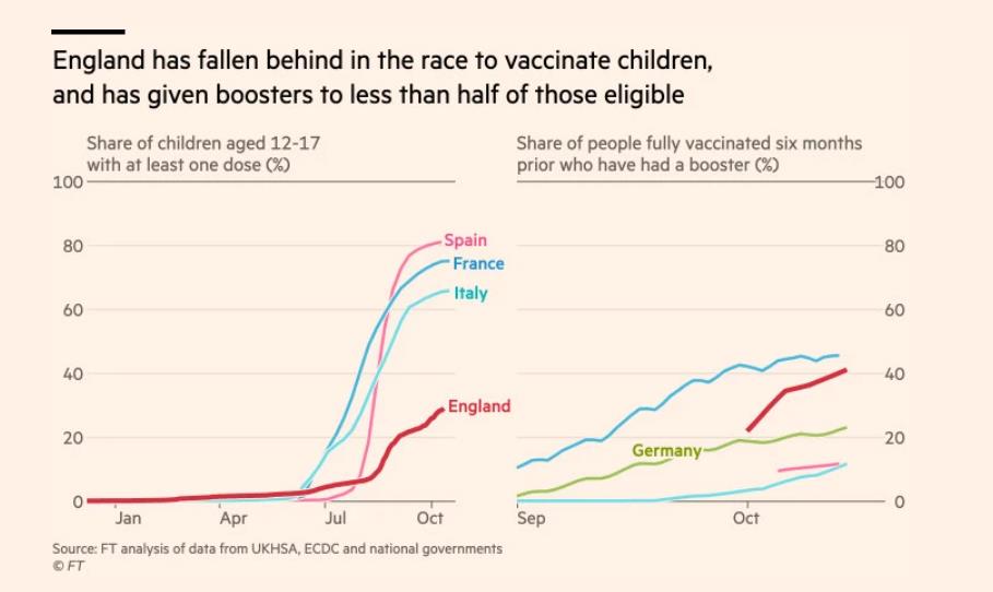 另外,数据还显示,在12-17岁的儿童中,英国目前的接种率也低于法国、西班牙和意大利。