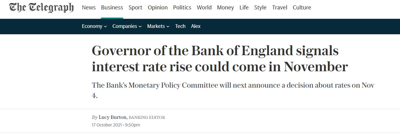 尽管有媒体认为,贝利的言论可能意味着央行货币政策委员会最早会在11月4日的会议中宣布加息决定。