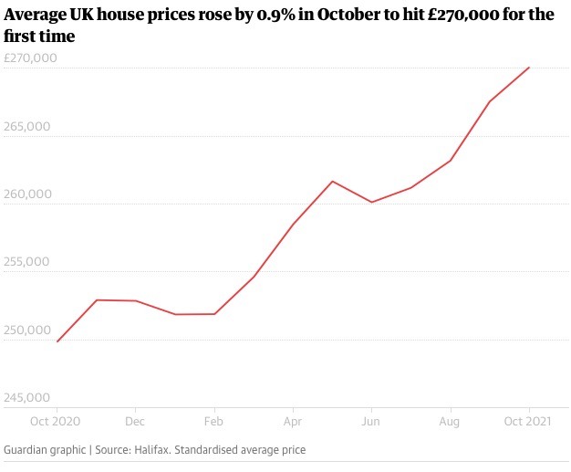 英国10月份房价连续第四个月上涨,单月涨幅0.9%,房价首次超过27万英镑的平均水平。