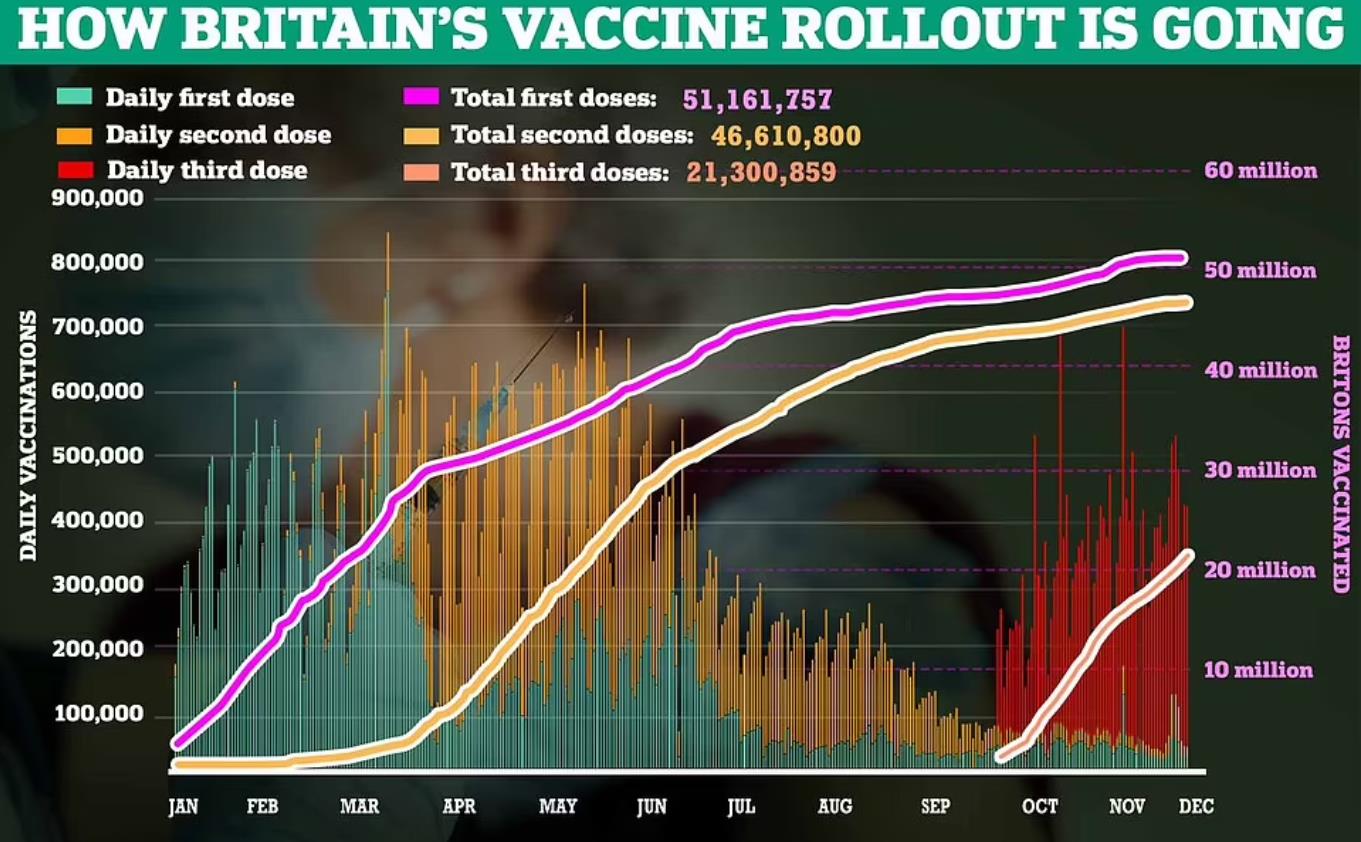 另外,英国迄今已为超过2,130万人接种了第三剂加强疫苗,但距离最终接种目标还有一段距离。
