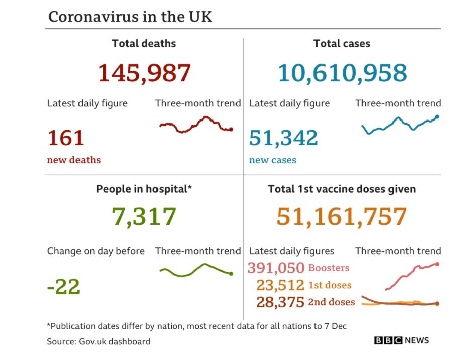 本周三,英国新增确诊51,342例,新增死亡161例。
