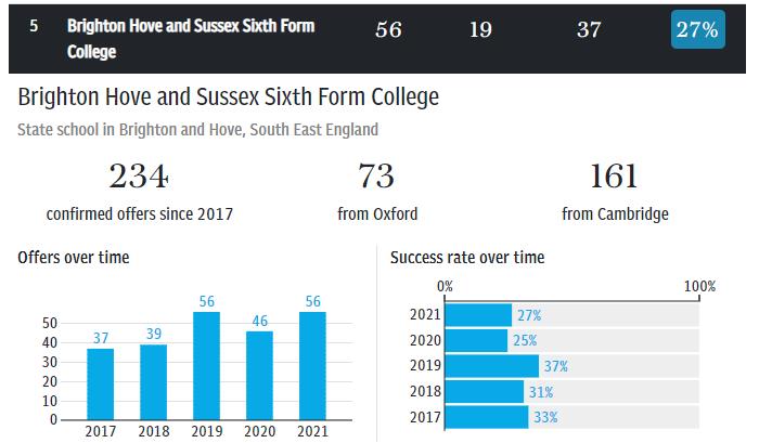 2021年,该校总共收到了56份来自牛剑的offer,其中,牛津19份,剑桥37份,录取率27%。