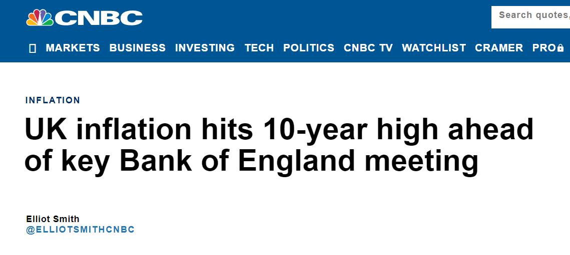 官方数据显示,11月份,英国消费者价格指数(CPI)同比上涨5.1%,不仅高于10月份的4.2%,也高于预期的4.7%,是自2011年9月以来的最高水平。