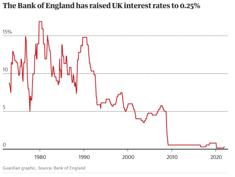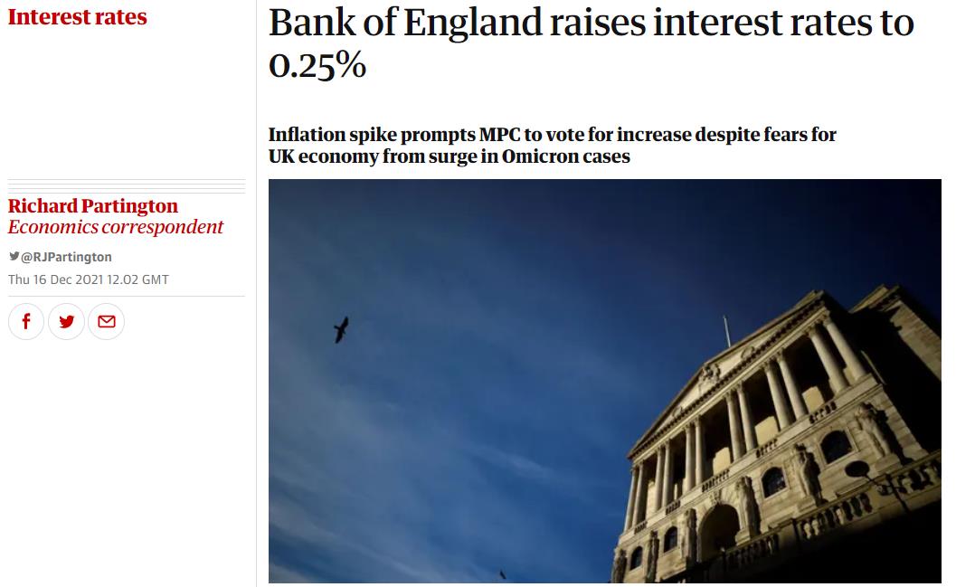 就在上周四,英国央行宣布重磅消息,将把其基准利率从0.1%的历史低位上调至0.25%!