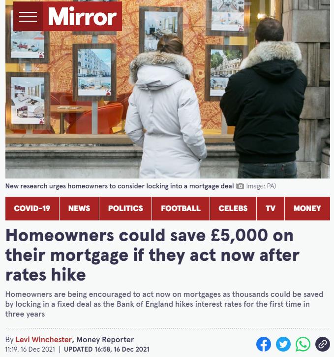 Private Finance 的负责人Chris Sykes表示:“人们已经习惯了低利率,所以很多人可能提前考虑再抵押贷款或者提前贷款买房。”