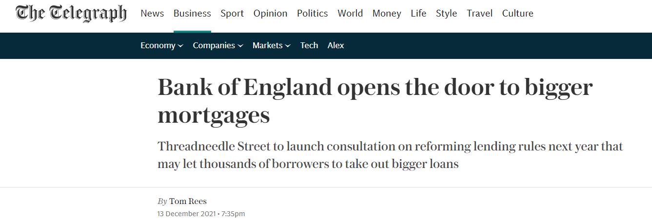 而且,就在近期,还有一个好消息爆出,英国央行打算放松对抵押贷款负担能力的要求。