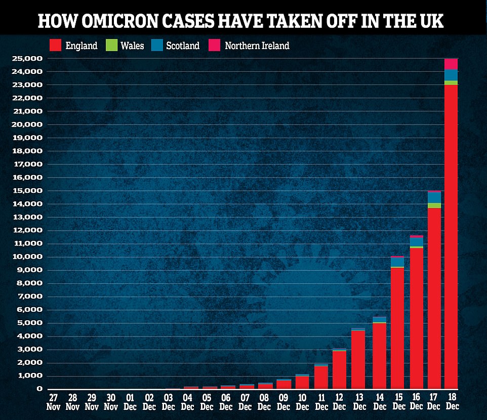 昨天,确诊感染了Omicron变异毒株的患者在短短24小时内上升近50%,至3.7万例。