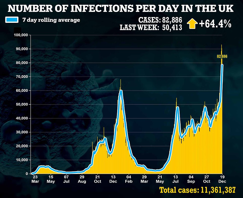 昨天,英国新增确诊82,886人,较上周同一时间上涨64.4%。
