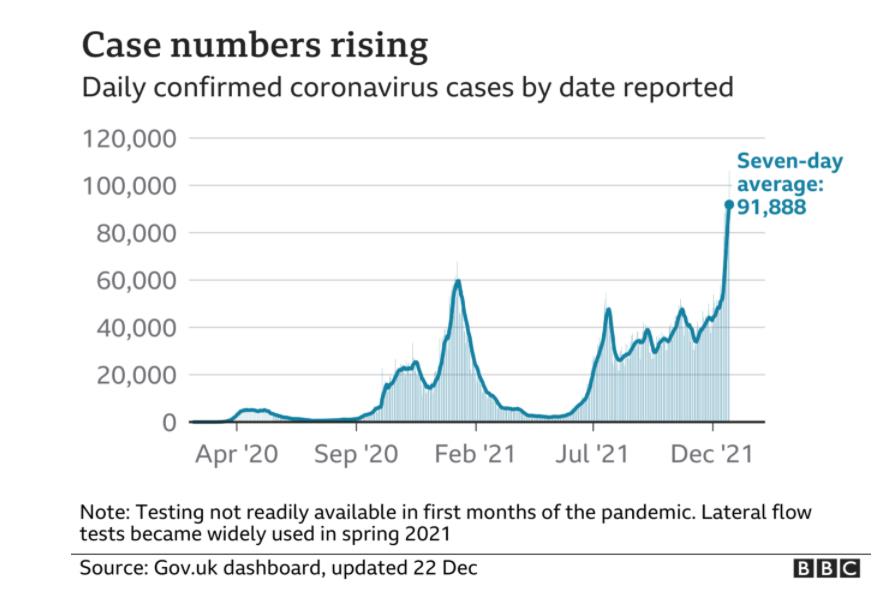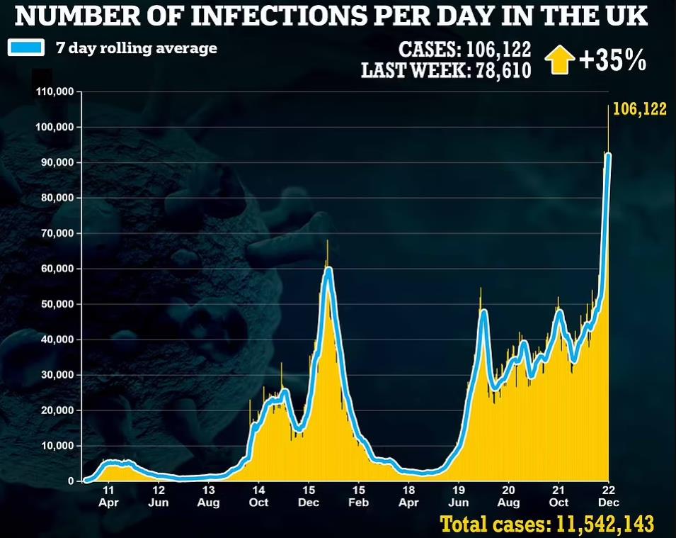 官方数据显示,本周三,英国新增确诊106,122例,较上周同比增加35%,再创新的记录。