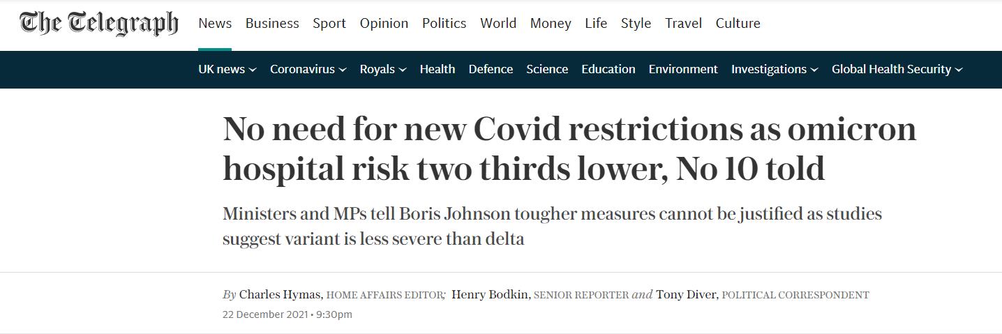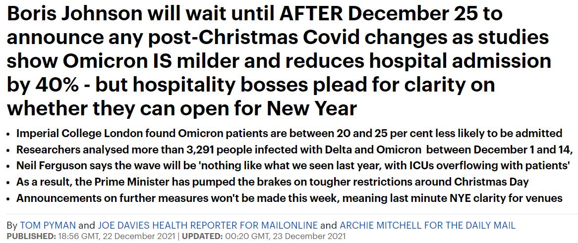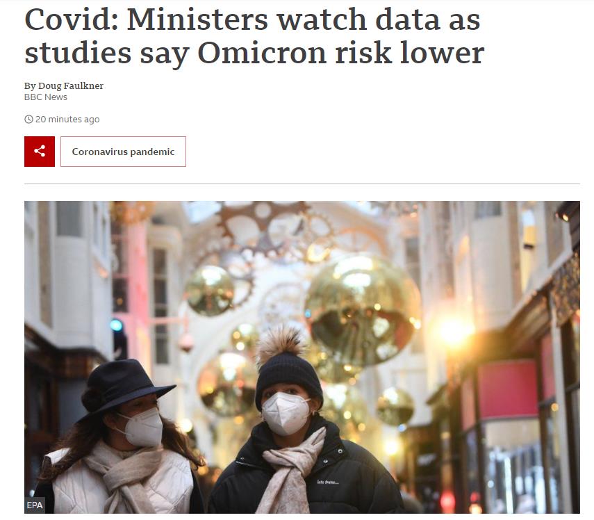 但从近几日的报道来看,鲍里斯已经排除了在圣诞节前改变防疫规则的可能。媒体认为,其中有很大一部分原因是目前关于Omicron的数据都比较“积极”。