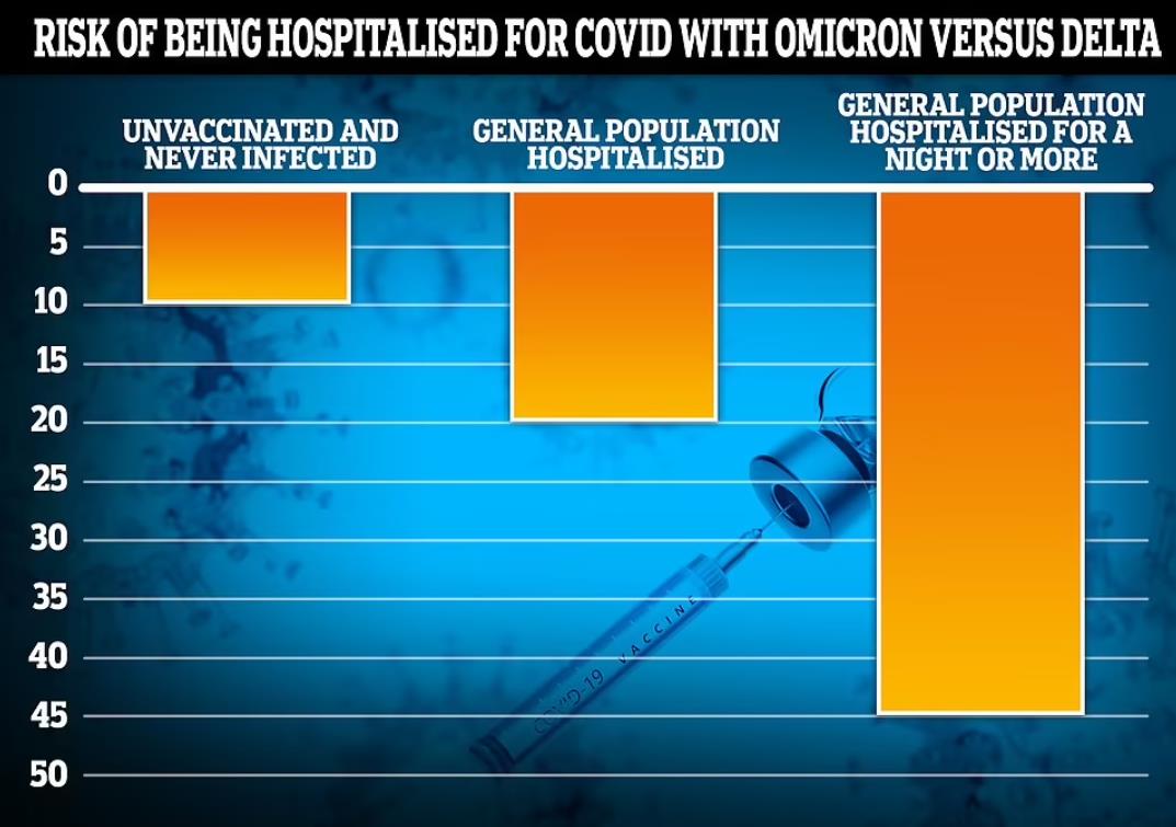 即便从未接种过疫苗的人,Omicron导致住院的可能性也比Delta低10%。