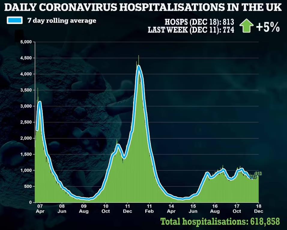 最新数据还显示,12月18日全英共有813人因新冠入院,一周内仅增加了5%,住院数并未出现大幅度激增。