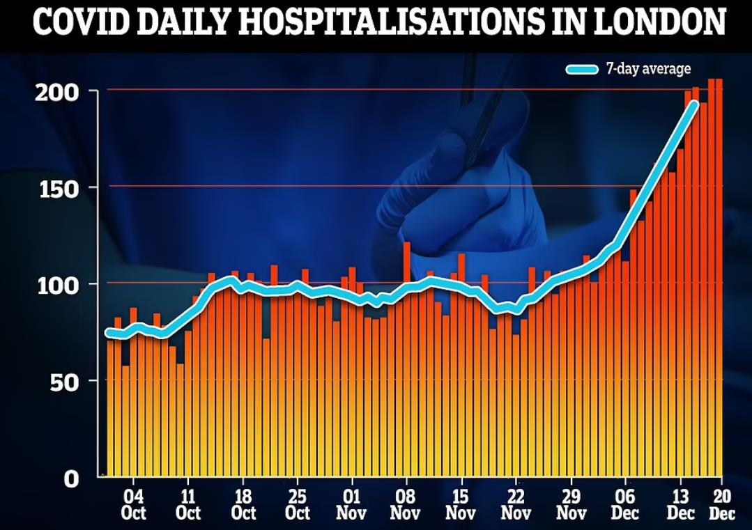 有政府消息人士称,如果伦敦本周的每日入院人数突破400,将达到“触发点”,意味着NHS面临着“不可持续”的压力,官员们将考虑在圣诞节后实施为期两周的全国性“断路器”封锁。