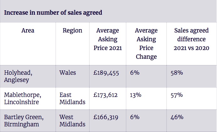 与此同时,Holyhead,Mablethorpe和Bartley Green等地,在2021年交易量涨幅超过了46%,这也足见这些地区的房产受欢迎。