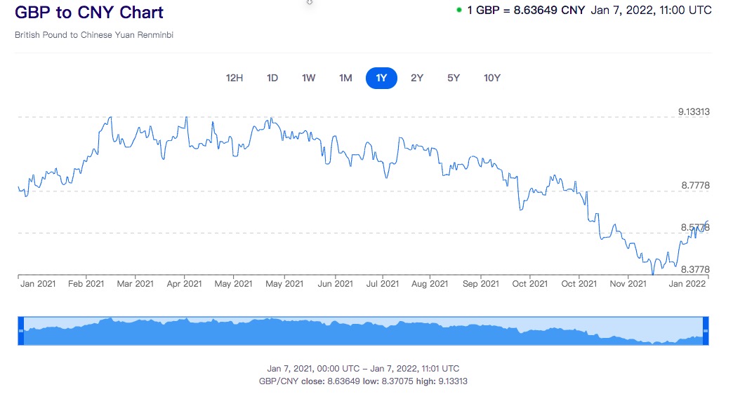 兑换人民币汇率为1GBP = 8.63649CNY