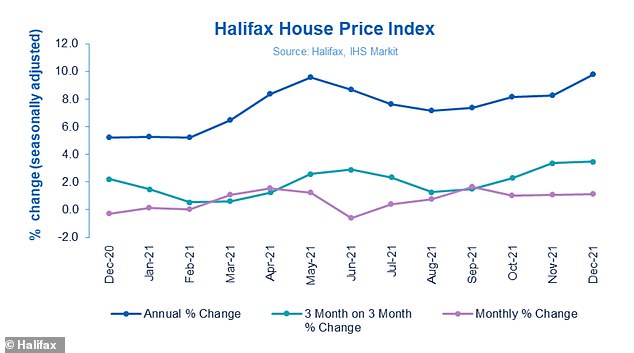 - Halifax数据显示:2021年,英国房价在一年内上涨了2.45万英镑,涨幅9.8%,创下金融危机以来的最大年度涨幅。