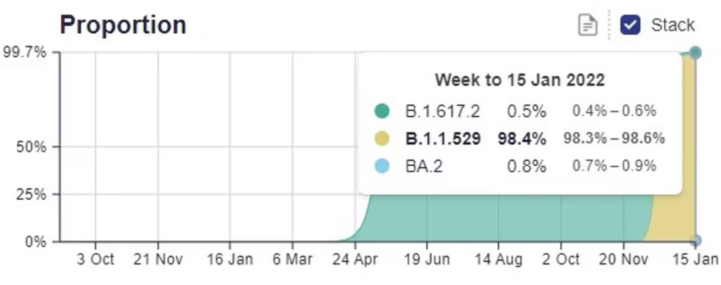 Sanger研究所表示,BA.2的病例数现在已经超过Delta,占全部病例的0.8%。