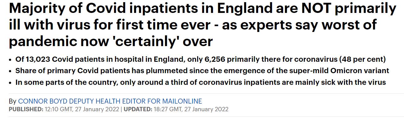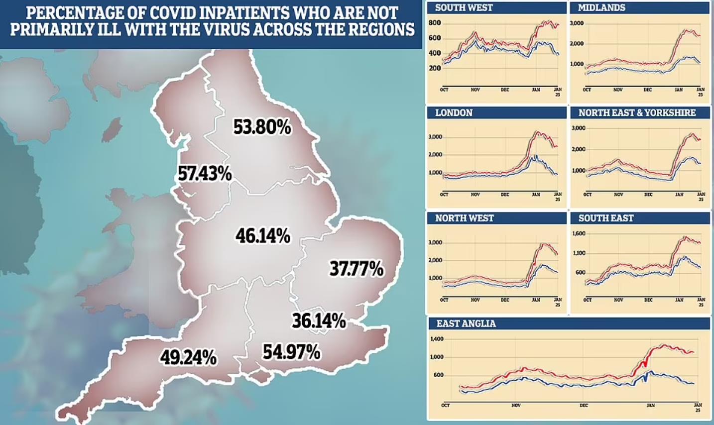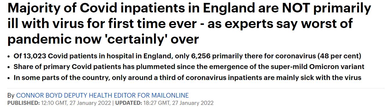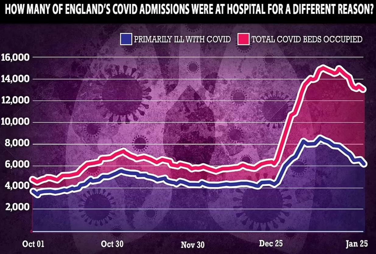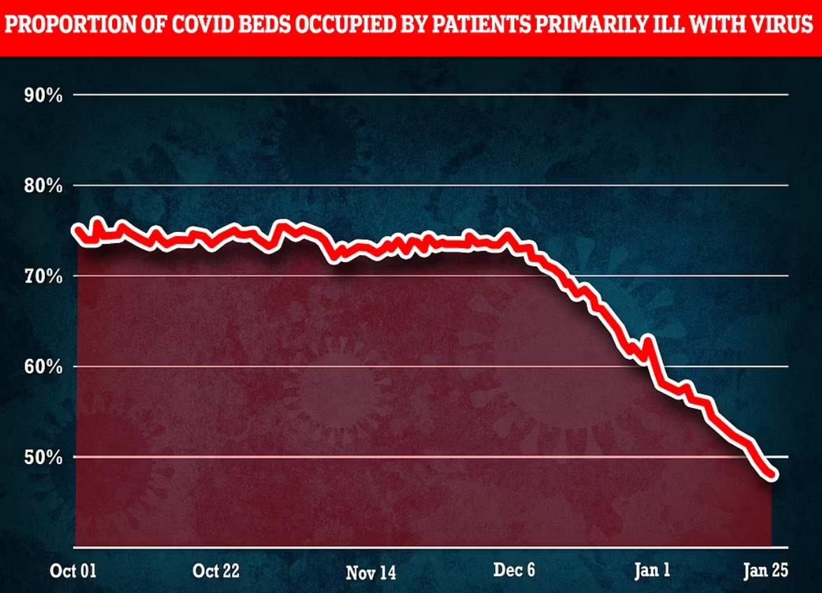 据悉,1月25日,有13,023名新冠患者住院,其中仅有6,256人主要是因为出现新冠症状才住院的(48%)。