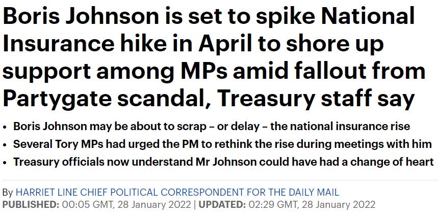另外,有财政部工作人员认为,为争取保守党议员的支持,鲍里斯很可能会考虑取消或推迟增加国民保险税(NationalInsurance)。