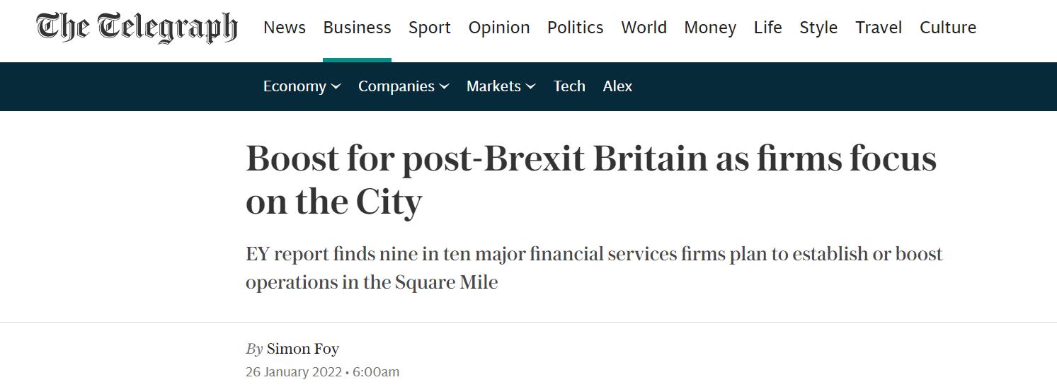 无独有偶,就在昨天,安永(EY)的另一项研究发现,大多数全球金融公司对伦敦的投资信心高涨。近90%的大型金融服务公司表示,他们要么将寻求在英国开设业务,要么将扩大现有业务。