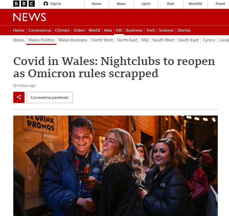 本周五,威尔士将进一步放宽新冠限制措施,夜总会重新开放,酒吧和餐馆六人规则被取消…