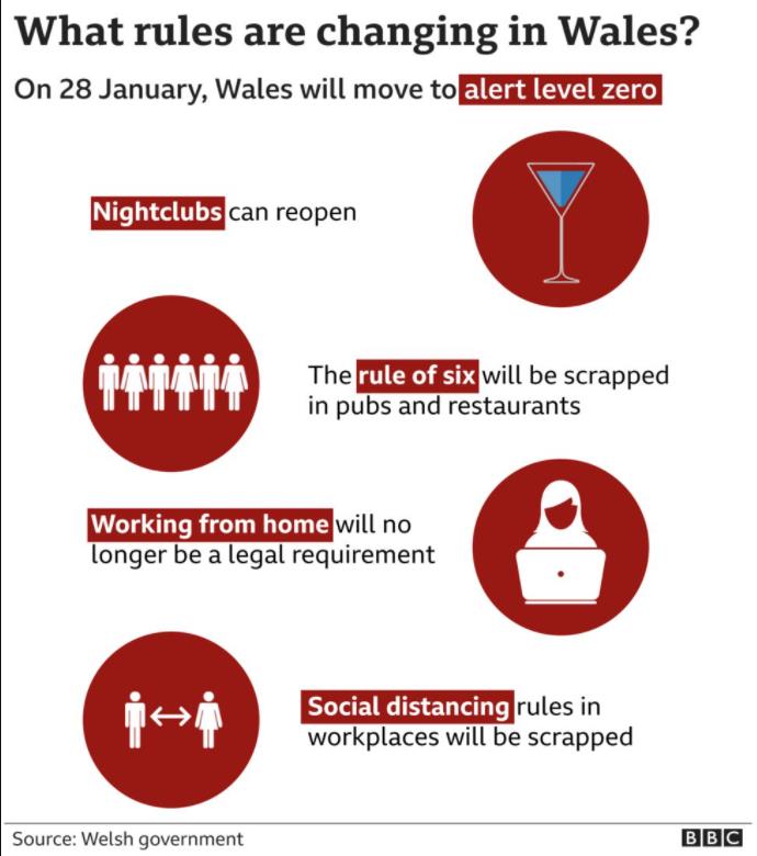 自1月28日(本周五)起,威尔士将疫情警戒级别调至0级,并进一步放宽当地的新冠限制措施。