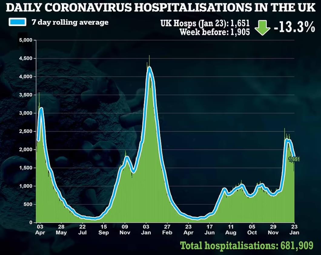 1月23日新增住院1,651人,同比下降13%。