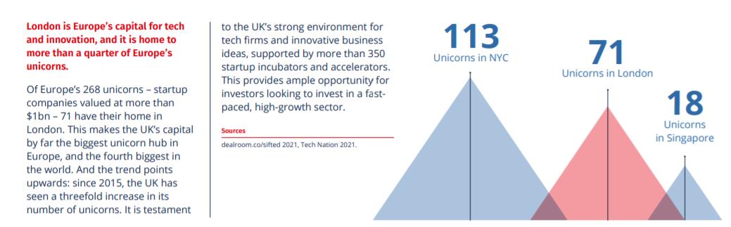 伦敦还是欧洲的科技和创新之都,欧洲超过四分之一的独角兽企业(估值超过