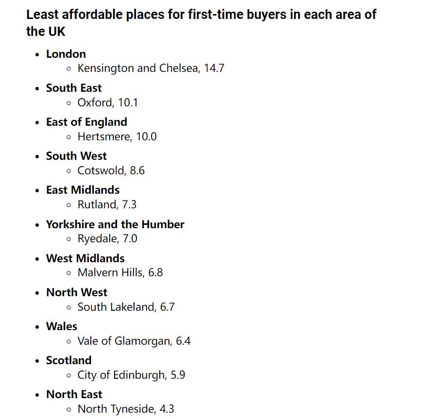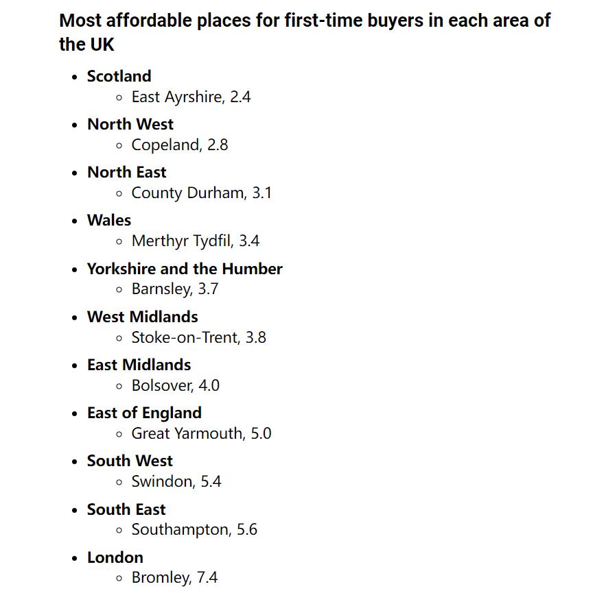 相比之下,苏格兰的EastAyrshire是最易负担的地区,仅需收入的不到两倍半就可以买的起房。