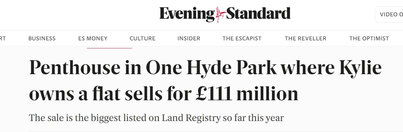 去年10月,海德公园(OneHyde Park)的一套顶层公寓以1.1亿英镑的天价售出。