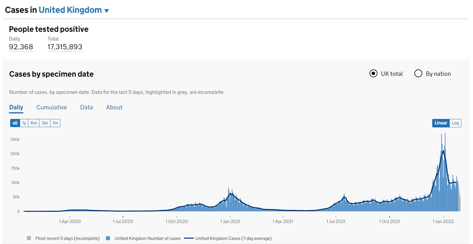 值得注意的是,从本周起,英国政府将再感染人数(以前感染过又重新感染的人)纳入了计算中,因此,本周一英格兰新增80万再感染病例。这也使得本周一的累计病例跃升至1,731万例。