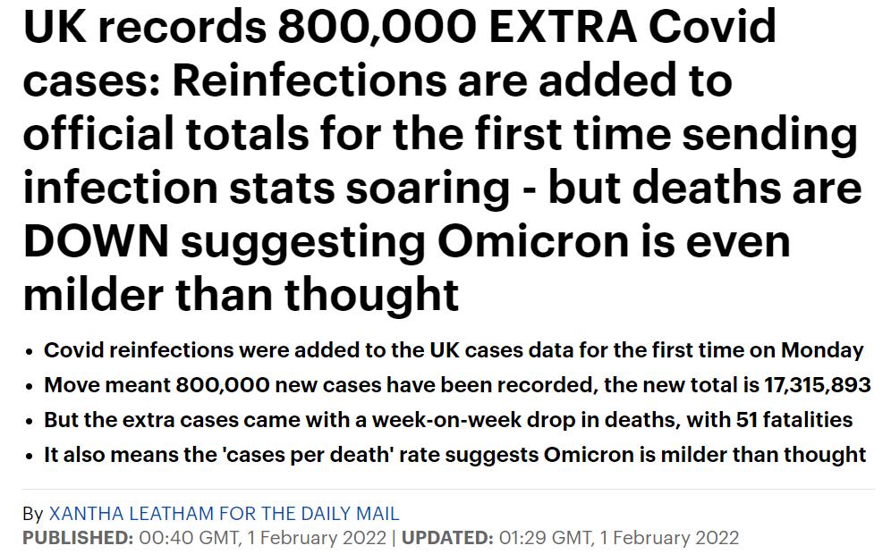 专家表示,加入再感染数据将显著降低病死率(CFR),这可能意味着超级变异毒株Omicron比最初想象的还要更加温和,因为研究表明,三分之二的感染了Omicron的人此前曾感染过新冠。